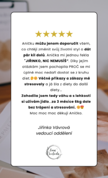 "Za 3 měsíce 6 kg dole bez trápení a stresování."