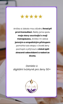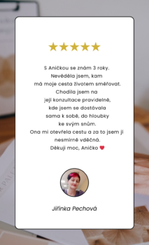 "Anička mi pomohla získat zpět ztracené sebevědomí a radost ze života."